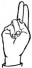 На ћирилици написано АНДРИЈАНА ЦРЕПУЉА састоји се из 16 слова [?]. Исписано ћириличном једноручном азбуком за глувонеме: